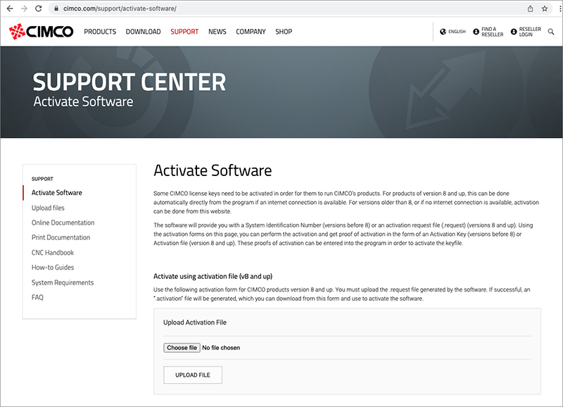 Open a web browser and go to the Activation page on the CIMCO web site at www.cimco.com/support/activate-software