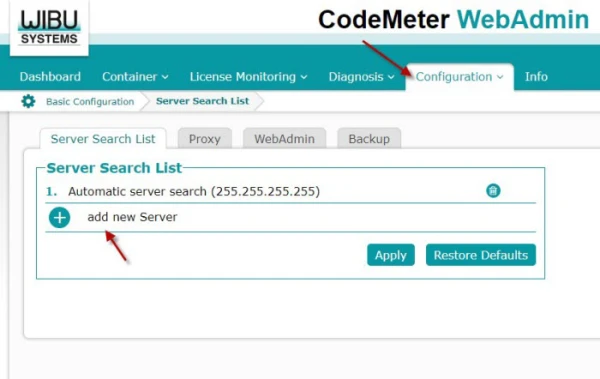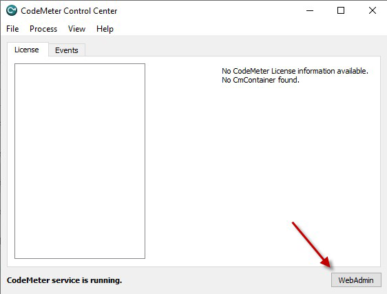 Click WebAdmin at the bottom right corner of the CodeMeter Control Center window.