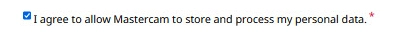 The website will request additional information when logging into the my.mastercam.com account for the first time. All fields marked with an asterisk (*) are mandatory.