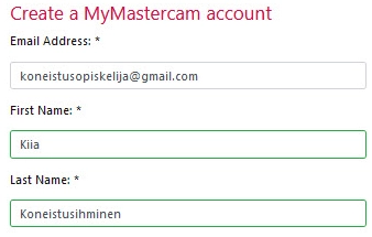 After this, the website will ask for the my.mastercam.com account details. - Ensure the email address is correctly written and enter your first and last name.