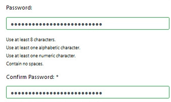 - Create a password for the account. The password must meet these conditions: at least 8 characters, at least one letter, at least one number, no spaces allowed