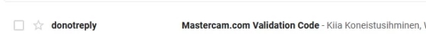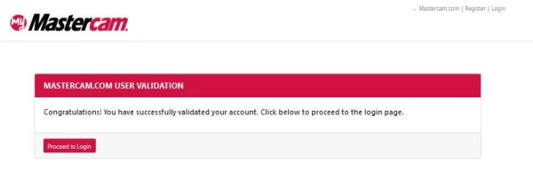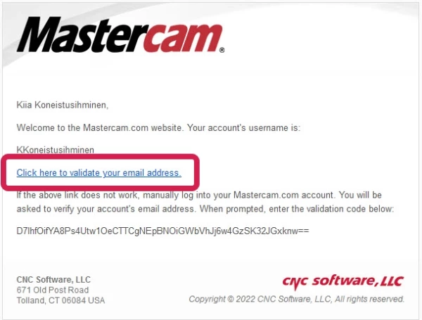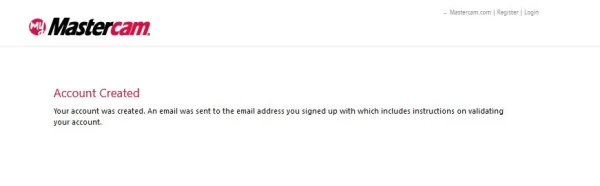 - Open your email and look for the Mastercam.com Validation Code message. If the message does not appear within 10 minutes of creating the account, check that it hasn't gone to the spam folder.