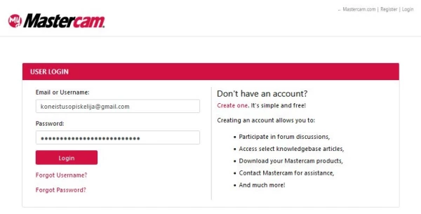 - Create an account at my.mastercam.com