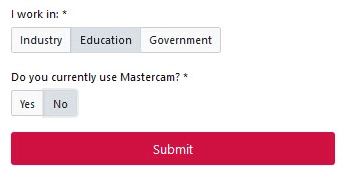 - Fill in the organization details. If you are a student, select Education. If you work at a company, choose Industry. Answer the question Do you currently use Mastercam? with Yes or No and then select Submit.