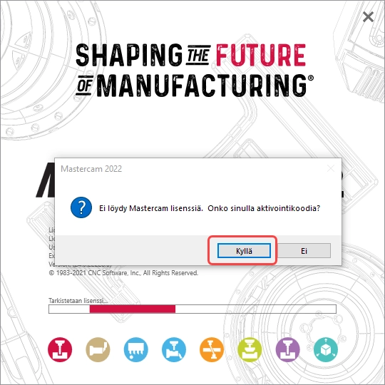 - When launching Mastercam for the first time, the software will ask if you have an activation code. Choose Yes.