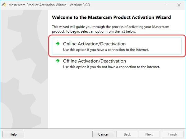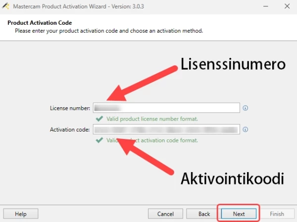 - Enter the activation code into Mastercam