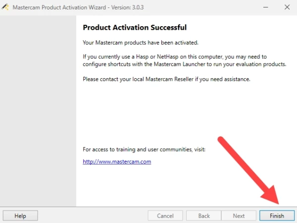 Enter the activation code into Mastercam