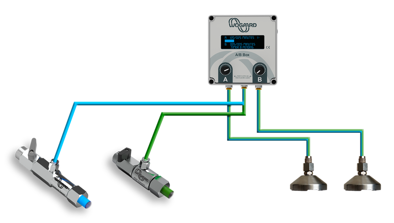 A/B Box will save you costs alongside Health and Safety and Environmental benefits. The Wogaard A/B Box allows the connection of 2 Vacuum Cups to reclaim coolant from only one unit of the Coolant Saver or the Oil Saver.