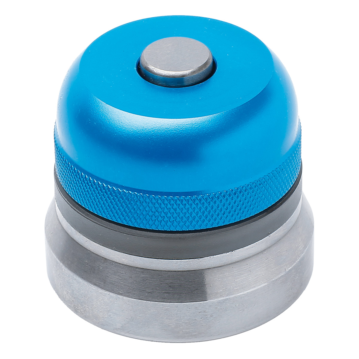 The apparatus is placed on the workpiece. With the spindle, now move carefully to the device. As soon as the LED lights up, you have achieved the reference value 50 mm. A safety spring way of approx. 3 mm to cross 50 mm is integrated.