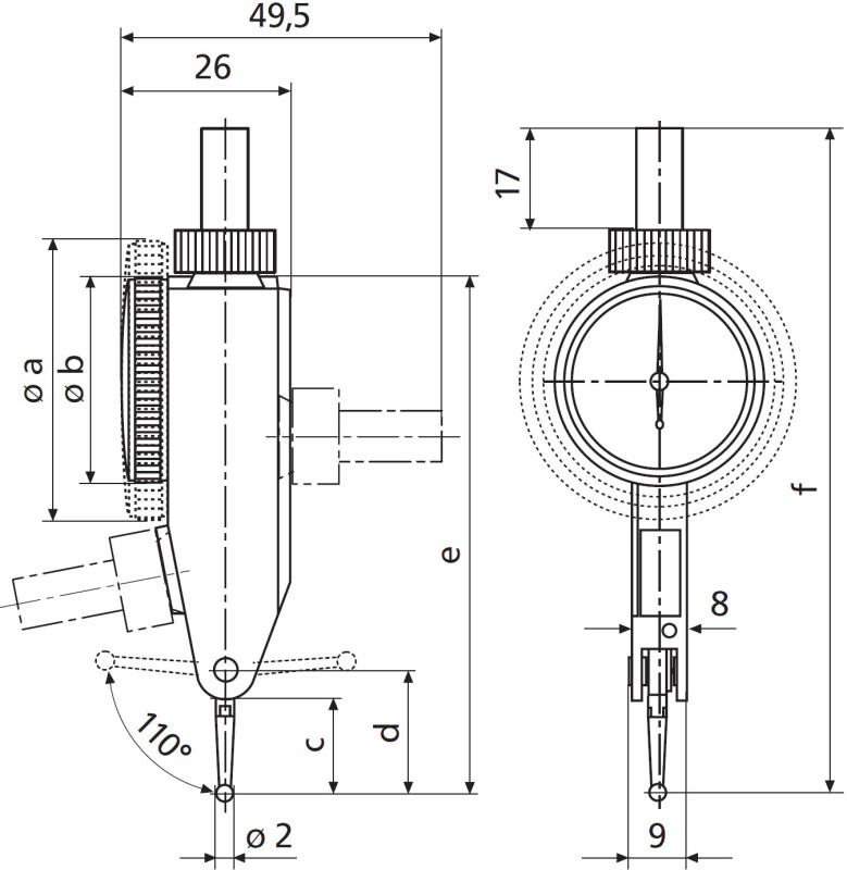 • Package contains: case, instruction manual, spanner for changing the styli, stylus dia. ø 2 mm, mounting shaft 800a8