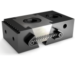 Matalakiinnitin jossa toinen leuka on kiinteä. Sileässä leuassa kierrereiät lisäleukaa varten sekä porrastus leuan yläosassa. Suojatut jouset