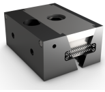 Matalakiinnitin jossa toinen leuka on kiinteä. Sileät leuat joissa kierrereiät lisäleukaa varten sekä kovametallinastat leuan yläosassa. Suojatuilla jousilla. Valmistusmaa Saksa, 5-vuoden takuu