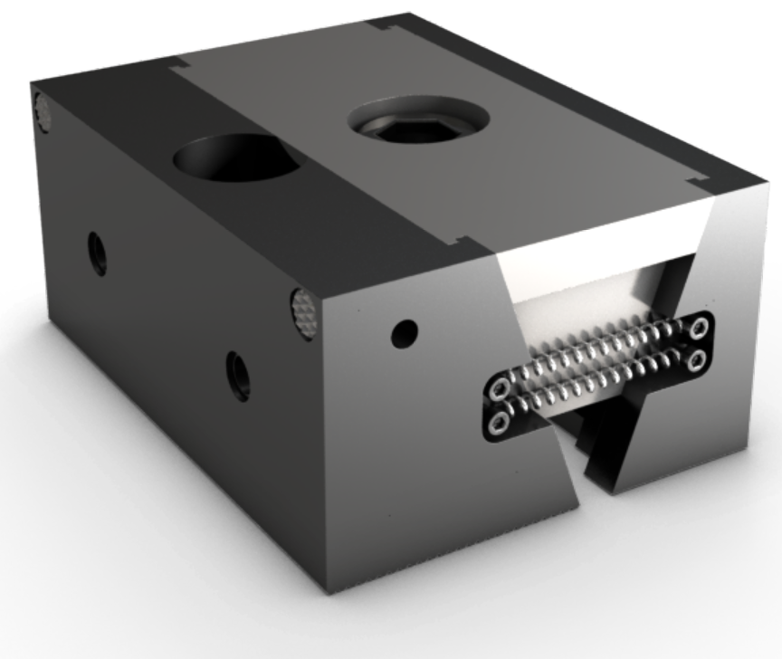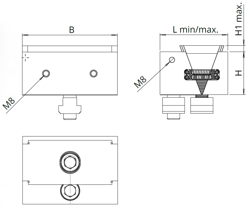 Matalakiinnitin jossa toinen leuka on kiinteä. Sileät leuat joissa kierrereiät lisäleukaa varten sekä kovametallinastat leuan yläosassa. Suojatuilla jousilla. Valmistusmaa Saksa, 5-vuoden takuu