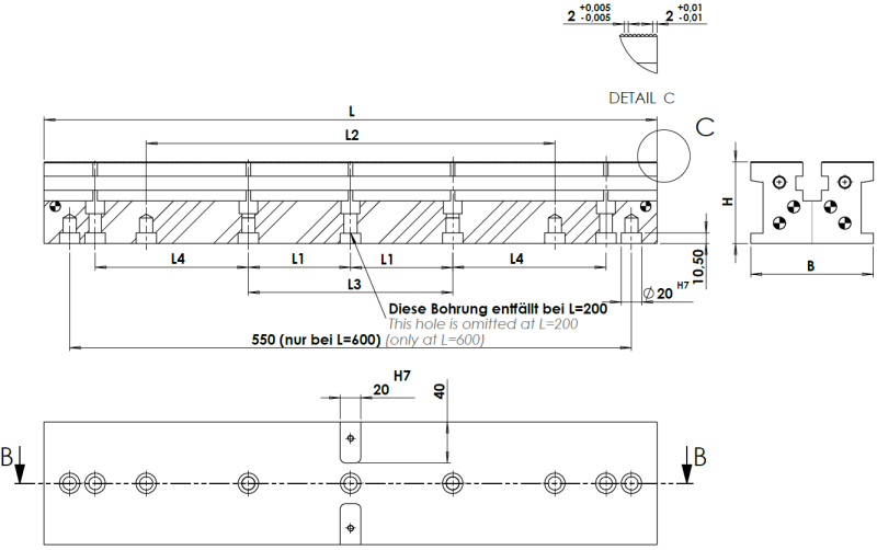 Kiinnityskisko matalakiinnittimille. Valmistusmaa Saksa