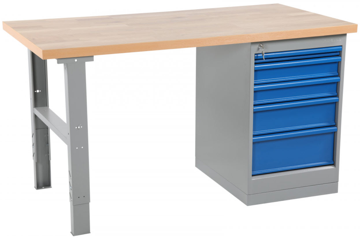 Erittäin vahva työpöytä 5-laatikon laatikostolla.