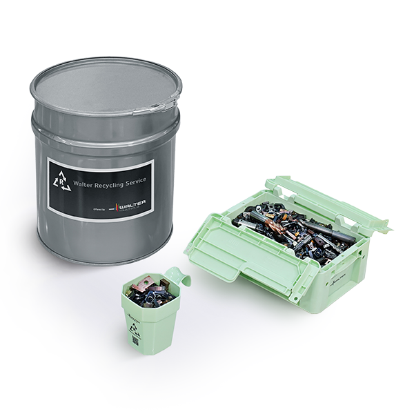 Kovametalli on teollisuuden keskeinen raaka-aine, mutta samalla se on myös rajallinen ja arvokas luonnonvara. Walter Tools tarjoaa asiakkailleen kierrätyspalvelun, joka mahdollistaa käytettyjen työkalujen palauttamisen takaisin tuotantoon. Palvelun avulla materiaalikierto sulkeutuu ja samoista raaka-aineista valmistetaan uusia työkaluja. Ratkaisu tukee kestävää kehitystä ja vähentää luonnosta louhittavan kovametallin tarvetta.