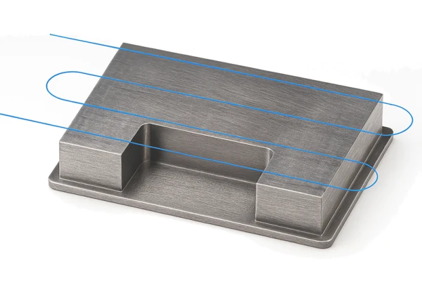 - Yhdensuuntainen Tasaus: Tämä menetelmä mahdollistaa työkalun liikkumisen yhdensuuntaisesti poistettavan materiaalin yli. Yhdensuuntaisessa lastuamisessa voidaan määrittää kaariliikkeellä tapahtuva lähestyminen, joka estää työkalun hakkaavan liikkeen erityisesti kovilla pinnoilla, kuten polttoleikepinnalla. Yhdensuuntainen tasaus tuottaa erinomaisen pinnanlaadun, koska kaikki lastut ovat samanlaisia ja työkalun taipuma ja työstökoneen välykset ovat samaan suuntaan.