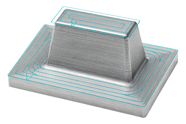 - Z-tason mukainen koneistus: Jokainen tasoalue käsitellään sen omalla Z-korkeudella, mikä takaa tasalaatuisen pinnan.