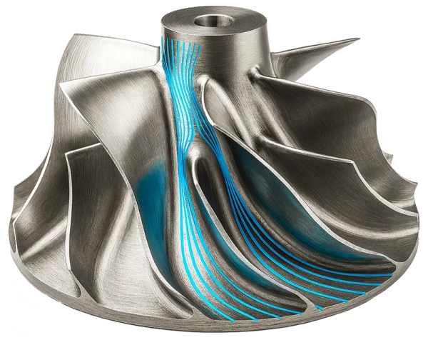 - Kompressorin ja pumpun siipipyörät: Kappaleet, joissa siivet liittyvät tarkasti napoihin ja kanaviin, edellyttävät korkeaa pinnanlaatua ja toistettavuutta.