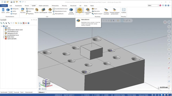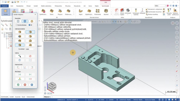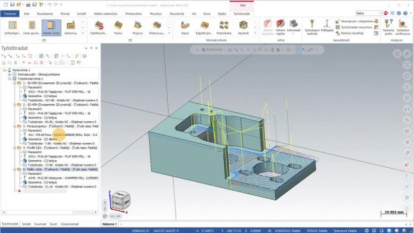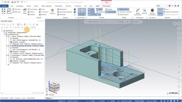 Mastercam 2025 perusteet - käyttöliittymässä opit hallitsemaan Mastercam-ohjelmiston keskeiset toiminnot ja käyttöliittymän. Tämä kattava videokoulutus käsittelee ohjelmiston yleisimmät toiminnot, kuten tasojen hallinnan, 2D rautalankageometrioiden luomisen, 3D solid geometrioiden luomisen ja muokkauksen. Lisäksi opit geometrioiden siirron, kopioinnin, kierron jne. sekä kuvaruudun ja suuntien hallinnan. Videot kattavat myös työstöratojen simuloinnin ja ketjutukset sekä ohjelmiston yleisimmät asetukset. Perusteissa läpi käytyjä ja opittuja asioida tullaan hyödyntämään myös seuraavissa harjoituksissa. Tämä koulutuspaketti on suunniteltu auttamaan sinua tulemaan Mastercam 2025 -ohjelmiston taitavaksi käyttäjäksi.