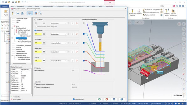 Mastercam 2025 perusteet - Mill2D -videokoulutus on kattava opas 2D-jyrsinnän hallintaan Mastercamissa. Kurssi kattaa tärkeimmät 2D-työstöradat kuten profiilijyrsinnän, porauksen, dynaamisen jyrsinnän, kuorinnan ja OptiRouhinnan jne. Opit videoiden avulla lastuavien työkalujen ja pitimien hallinnan, työstöratojen simuloinnin sekä operaatioiden vienti ja tuonti ominaisuudet. Kurssi tarjoaa perusteellisen katsauksen 2D-profiilijyrsinnän eri ominaisuuksiin kuten, viistejyrsintään, ramppityyppeihin ja jälkityöstöihin. Dynaamisen jyrsinnän ketjutus ja keskeisten työstöasetusten hallinta ja kaarisuodatus käydään läpi yksityiskohtaisesti. Opit hyödyntämään työkaluparametreja ja työkalukirjastoja tehokkaasti, mahdollistaen Mastercam 2025 -ohjelmiston Mill2D työstöratojen täyden potentiaalin hyödyntämisen.