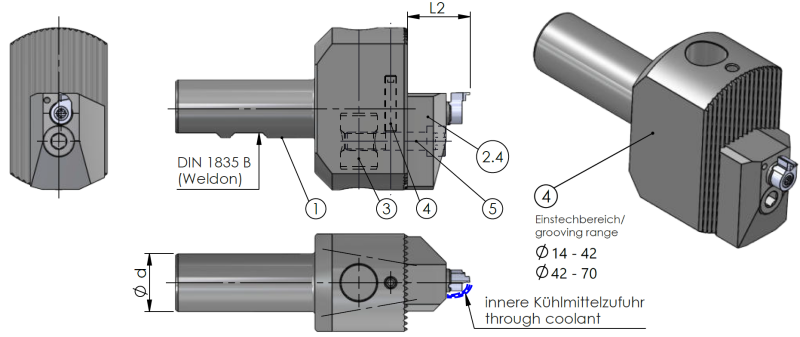 Täydellinen aksiaalipistotyökalu Minicut-teränpitimellä
