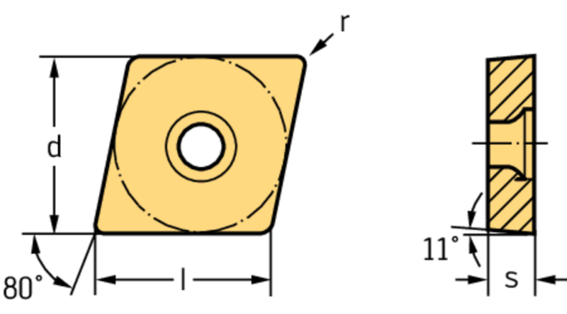 Rombinen positiivinen terä 80°