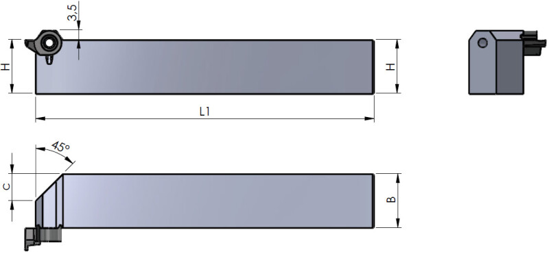 Kuvassa oikeakätinen työkalu jossa vasenkätinen terä