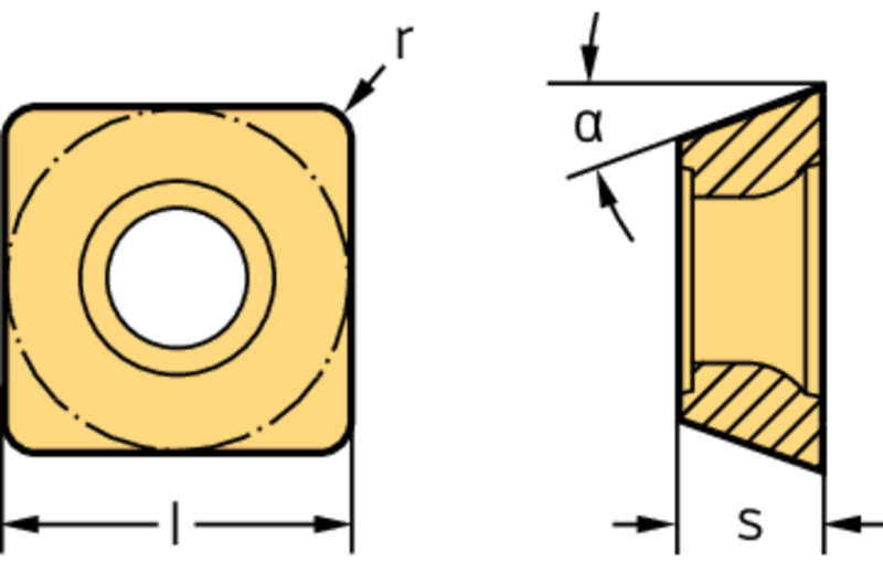 Nelikulmainen positiivinen terä