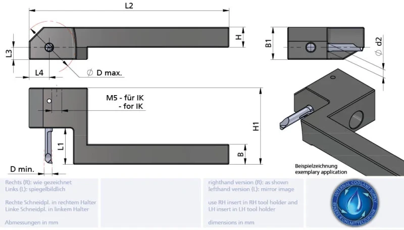 Työkalupidin, neliövarsi, sisäisellä jäähdytyksellä