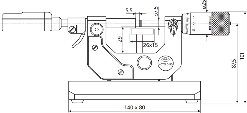 Analoginen kaarimikrometri tarkkuusmittakellolla ja jalustalla