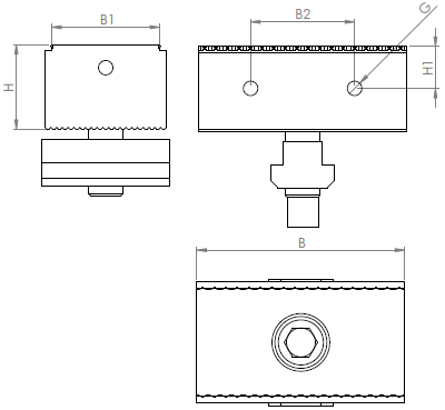 Kiinteä vaste sileillä leuoilla joissa kierrereiät lisäleukoja varten. Valmistusmaa Saksa