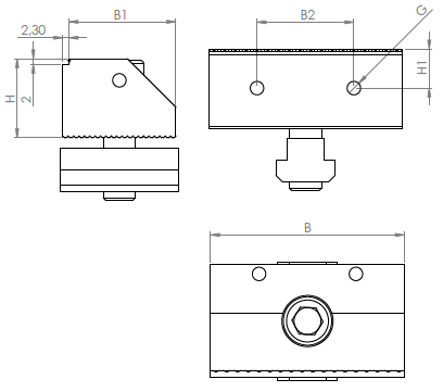 Liikkuva, kevennetty ja sileä leuka 5-akseli kiinnityksiin, jossa kierrereiät lisäleukaa varten. Valmistusmaa Saksa