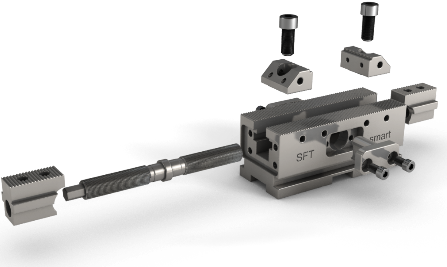 Smart-keskittävä puristin sisä- ja ulkopuoliseen kiinnittämiseen. Puristimeen voi asentaa uivan keskivasteen. SFT-matalakiinnittimet, kiskot sekä reikälevyt ovat yhteensopivia. Leuat ei sisälly toimitukseen. Valmistusmaa Saksa, 5-vuoden takuu