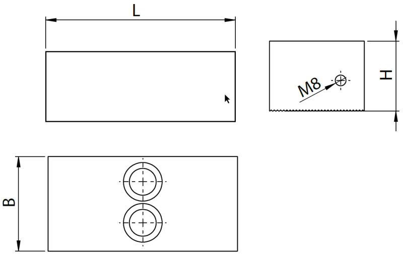 SFT 5-A monitoimipuristimen pehmeä perusleuka. Suositellaan karkaistavaksi 55HRC koneistuksen jälkeen.