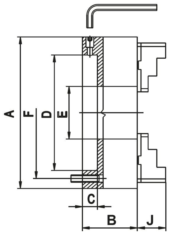 Teräksinen keskittävä kolmileukaistukka kaksioisaisilla leuoilla ja radiaalisella hienosäädöllä.