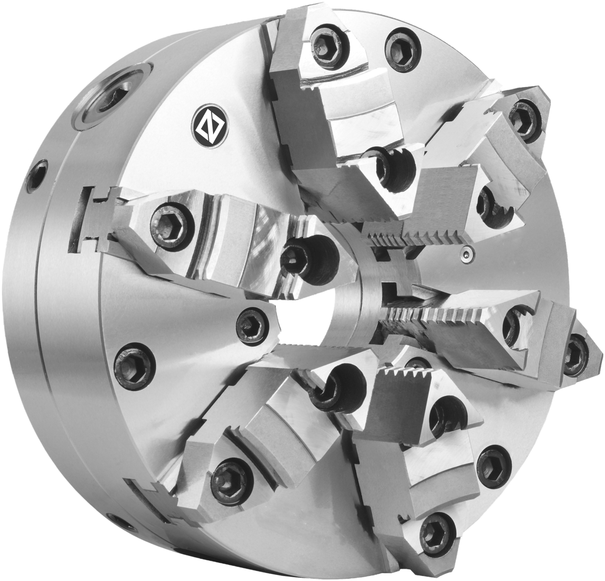 Teräksinen keskittävä kuusileukaistukka kaksioisaisilla leuoilla ja radiaalisella hienosäädöllä.