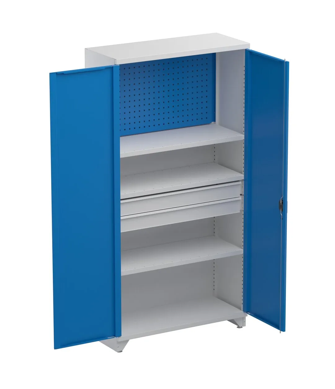 Hyllykaappi 100/40/200 3 hyllyä, reikälevy, 2 vetolaatikkoa