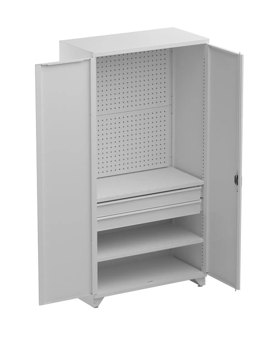 2 hyllyä, 2 reikälevyä, 2 vetolaatikkoa
