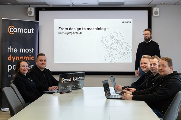 Viimeisimmät askeleet Camcutin digitaalisella kehityspolulla ovat kaksi uutta yhteistyökumppania. Tekoälypohjainen up2parts on ratkaisu, jonka avulla voidaan automatisoida tarjouslaskentaa, työvaihesuunnittelua ja CAM-ohjelmointia konepajojen omiin tuotantotietoihin perustuen. Helmikuussa Camcutin tiimi osallistui Kuopiossa järjestettyyn koulutustilaisuuteen, jossa up2parts GmbH:n toimitusjohtaja Marco Bauer koulutti henkilöstöä up2partsin käyttöön ja toimintaperiaatteisiin.