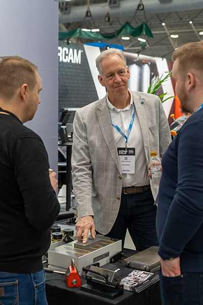 SAV:n magneettikiinnitysratkaisut herättivät kiinnostusta erityisesti asetusaikojen lyhentämisen ja kiinnityksen tasaisuuden näkökulmasta. Ratkaisuja oli osastollamme mukana esittelemässä SAV GmbH:n magneettikiinnityksen asiantuntija Marcel Keus.