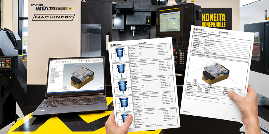 Camcutin innovaatio säästää aikaa ja vaivaa. Mastercamin asetuslehti-toiminto kokoaa kaikki tarvittavat tiedot valmistettavasta työkappaleesta automaattisesti yhteen dokumenttiin, joka voidaan helposti tulostaa eri tiedostomuotoihin, kuten .pdf-tiedostoksi. Asetuskortti on mahdollista tulostaa helposti ja nopeasti ilman tarvetta erillisille ohjelmistoille tai manuaaliselle tiedonsyötölle. Mastercamistä tulostettu digitaalinen asetuskortti voidaan tallentaa yrityksen tuotannonohjausjärjestelmään. Uusi muokattu asetuskorttipohja on ladattavissa veloituksetta Camcutin verkkosivuston tuki-osiosta.