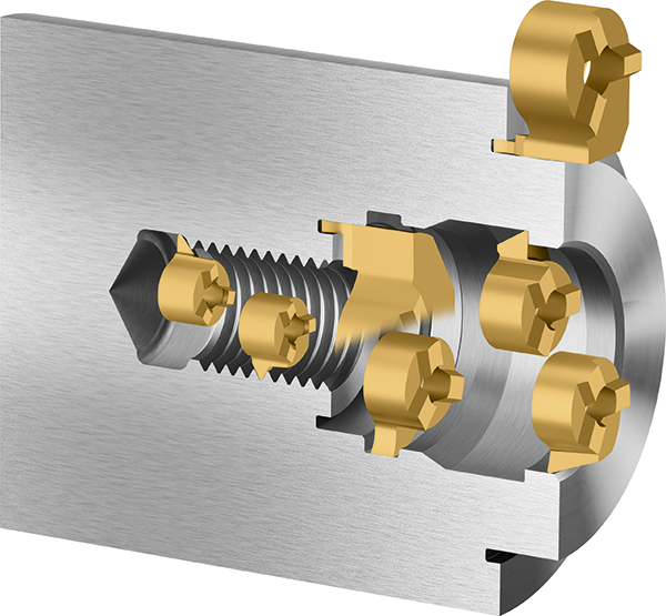 Det nya T1011 gängsvarvverktyget erbjuder en utmärkt lösning för bearbetning av yttre gängor. De nya TS gängsvarvinsatser med Tiger-tec® Gold-beläggning ger överlägsna skäregenskaper och en längre verktygslivslängd. Tillgängliga skärgeometrier som F5 och M5 är utformade för att förbättra spånkontrollen. Karbidsätet som stöds av T1011 gängsvarverktyg håller insatsen tätt och noggrant på plats samtidigt som den bibehåller optimal passform. TS gängsvarvinsats sortimentet täcker alla vanliga gängor som M, UN, UNJ, W, BSPT, NPT/NPTF, RD, TR, ACME, och BUTT, och de finns nu även tillgängliga i lådor med två insatser.