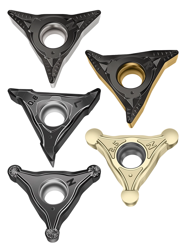 Rundnosade WL-skären finns med radier från R1,0 till 3,0 mm, vilket möjliggör dynamisk svarvning och profilering med samma trekantiga WL-system. De bearbetningsbara materialen sträcker sig från stål, gjutjärn och rostfritt till aluminium och svårbearbetade superlegeringar – och för hårdsvarvning finns även CBN-sorter.
