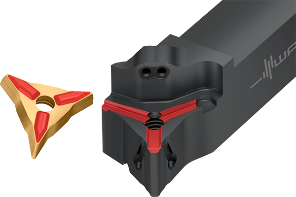 Med tre skäreggar ger WL-skären en direkt kostnadsfördel jämfört med traditionella tvåkantiga V- och D-skäreggeometrier. WL-spänningssystemet säkrar dessutom precis positionering varje gång skäret indexeras. Samma svarvhållare kan hantera fyra skärtyper – neutralt, vänster, höger och fullradie – vilket gör att du kan växla mellan svarvapplikationer utan att behöva byta hållare.