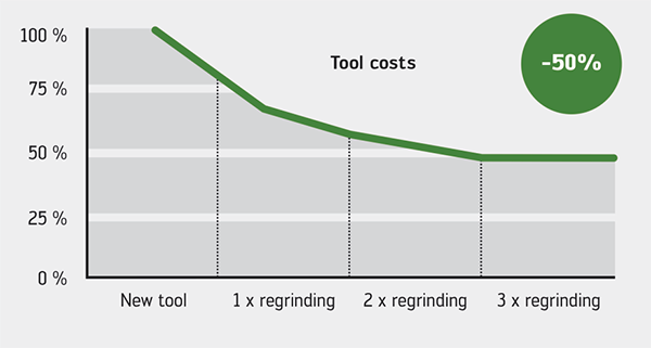 Omslipning av hårdmetallverktyg förlänger verktygslivslängden och kan minska verktygskostnaderna med upp till cirka 50 procent.