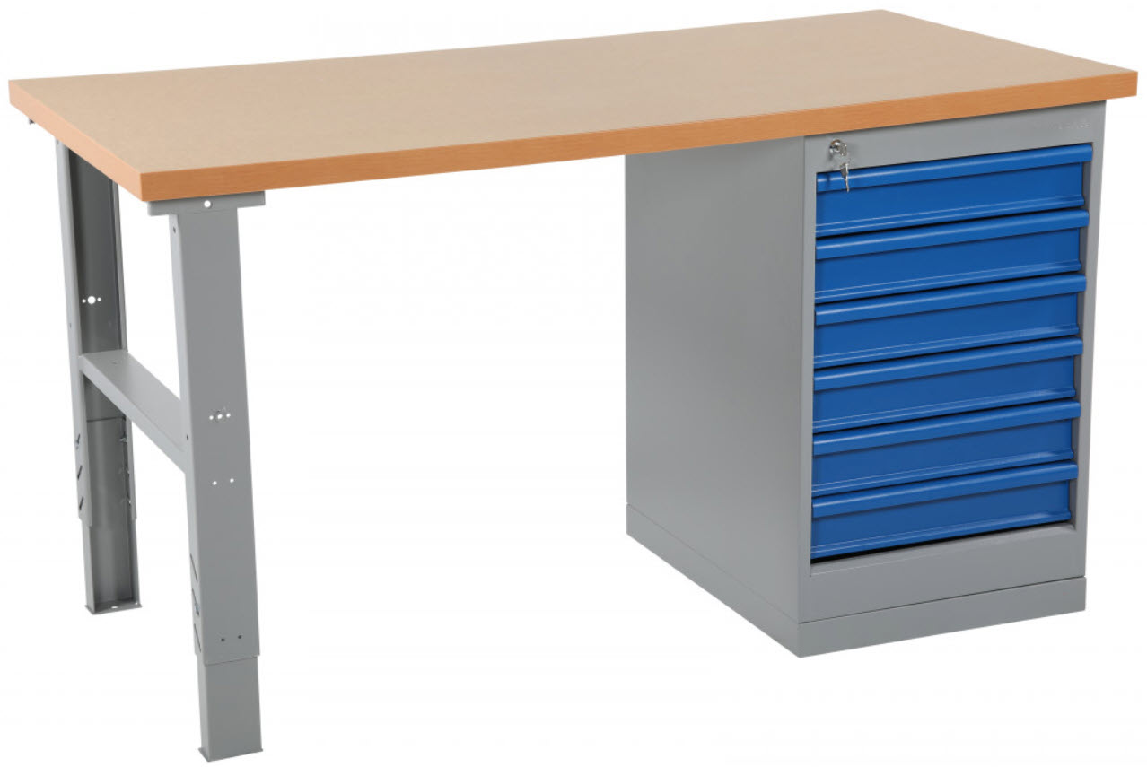 Erittäin vahva työpöytä 6-laatikon laatikostolla.