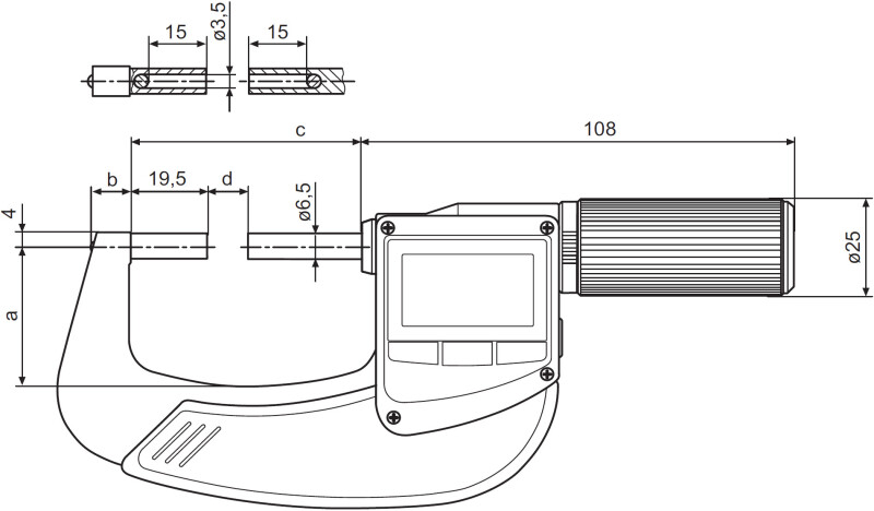 • Pakkaus sisältää: paristo, ohjekirja, asetusmitta (mittausalueelta 25 mm - 50 mm lähtien), kotelo