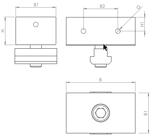 Vastakappale sileillä leuoilla joissa kierrereiät lisäleukoja varten. Valmistusmaa Saksa
