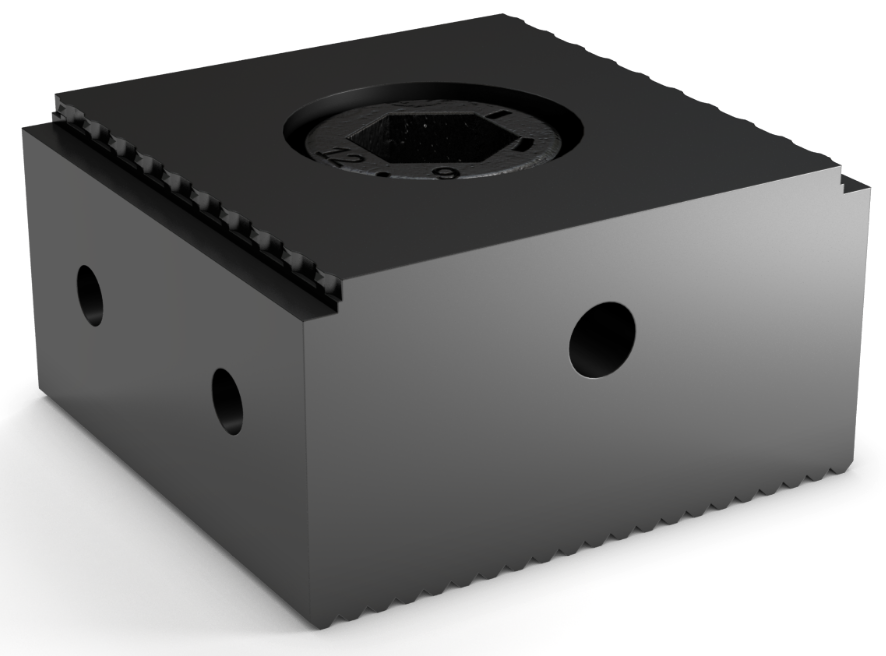 Vastakappale porrastetuilla leuoilla joissa kierrereiät lisäleukoja varten. Valmistusmaa Saksa